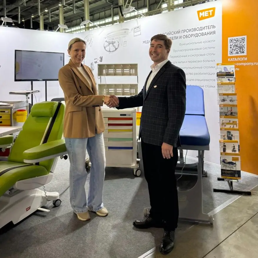 В рамках выставки представители ЮКИ посетили стенд компании МЕТ, где ознакомились с новейшими образцами продукции: смотровыми креслами, мобильными медицинскими тележками и современным медицинским оборудованием. Встреча стала важным шагом в укреплении связей между компаниями.